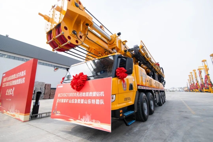 2024年,徐工XSL1000深井鉆機作為比武裝備,全程參與首次全國規模的礦山鉆探應急救援賽事;同年,徐工XSC1300大孔徑地面救援鉆機交付國家礦山應急救援山東特勘隊,深度參與國家礦山應急救援,徐工在礦山應急救援領域的每一步,都走得堅定而扎實。