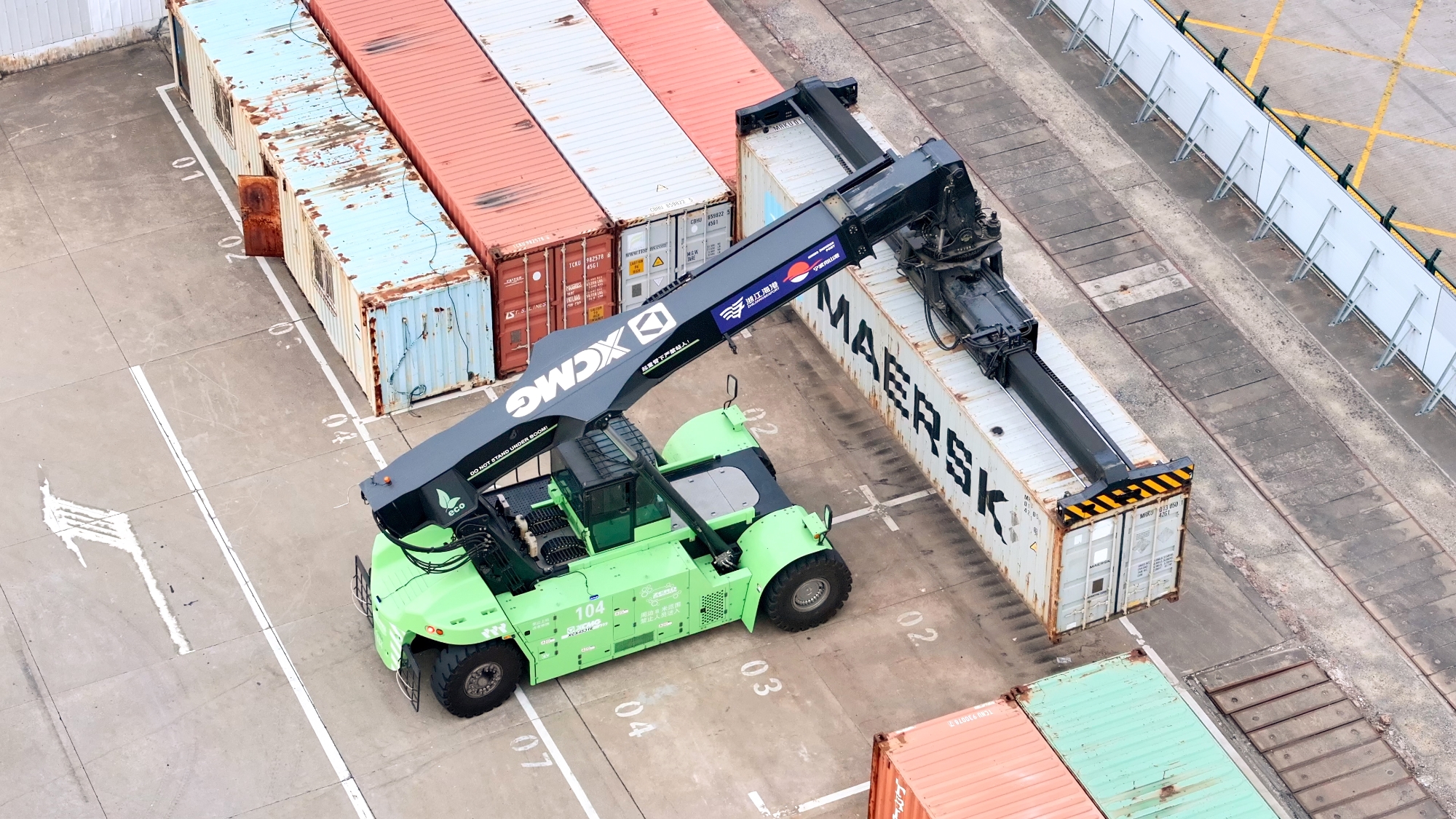 針對集裝箱堆存、轉運等核心場景,徐工打造了涵蓋電動正面吊、堆高機在內的成套純電裝備矩陣。其中,領跑行業的電動堆高機,已成為高端綠色碼頭的標配。在浙江海港的多處關鍵作業前沿,這套方案正構建高效、協同的智慧作業新生態。