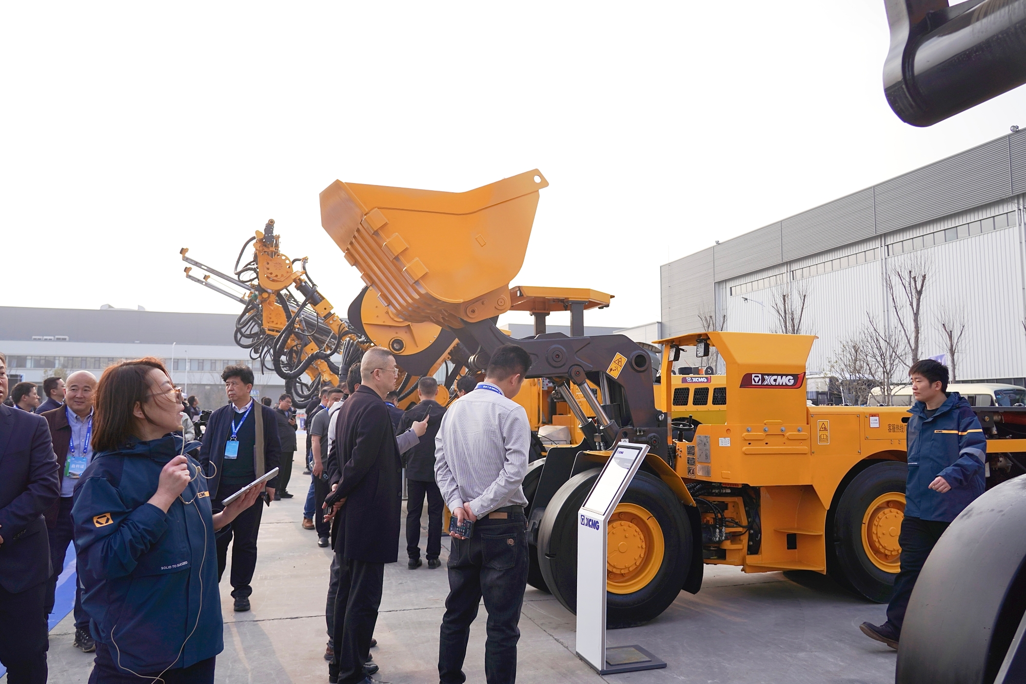 車鏟協同無人化動態演示現場引人駐足,客戶零距離接觸、打卡留念。