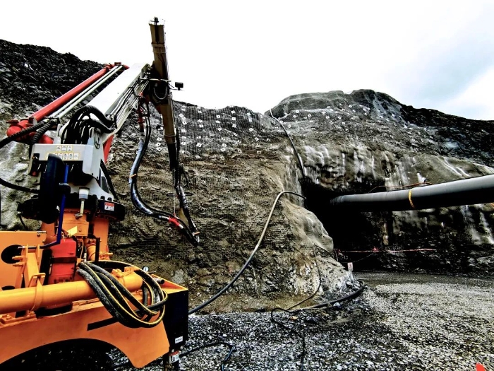越南某隧道施工現(xiàn)場,三臺徐工混凝土噴漿車正在進行一場“雙向奔赴”式施工。