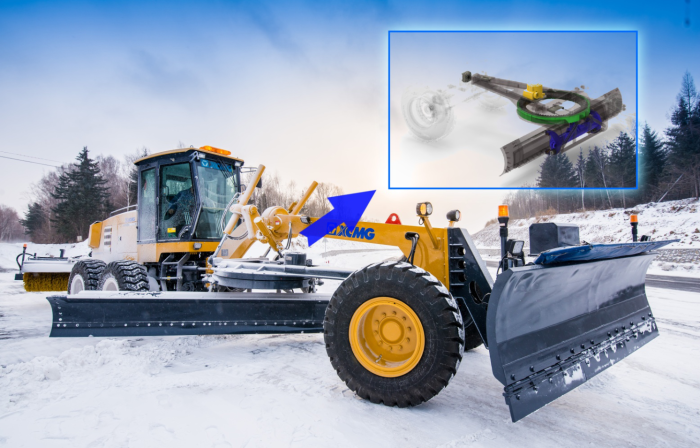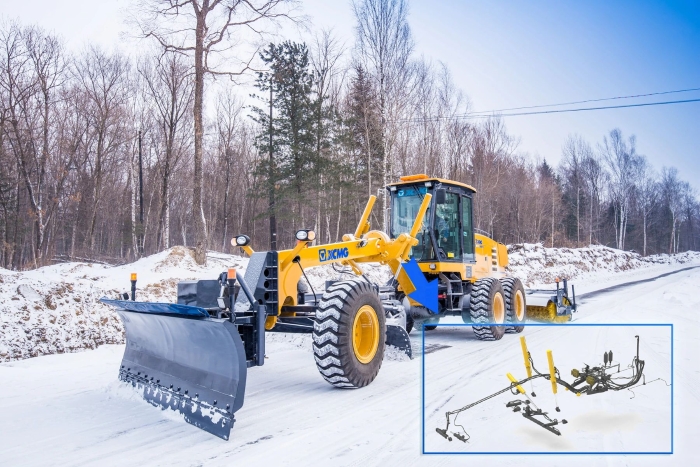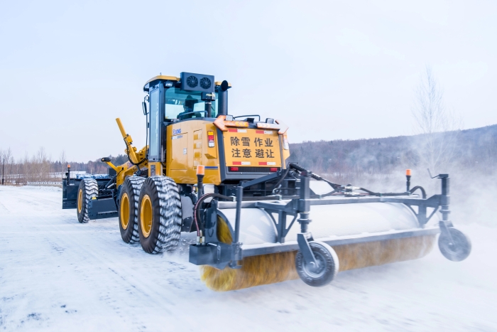 徐工除雪型平地機,基于工程型平地機加裝了專門為除雪研制的除雪裝置,能夠實現一機多用,在持續凍雨暴雪天氣中發揮絕對優勢,這也成為公路部門冬季應急必備設備。