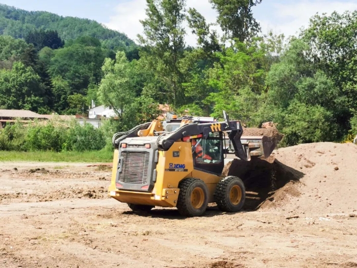 歐洲南部某國,徐工XC7-SV12滑移裝載機正忙碌于市政管路鋪設,在狹窄場地來去自如,作業游刃有余。