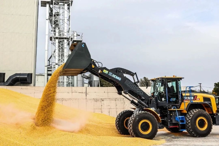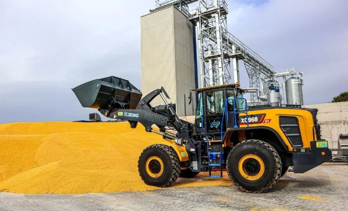 眼下,在歐洲某農產品加工廠,徐工XC968-EV純電動裝載機正迅速揮動大臂,翻動室外晾曬的谷物。