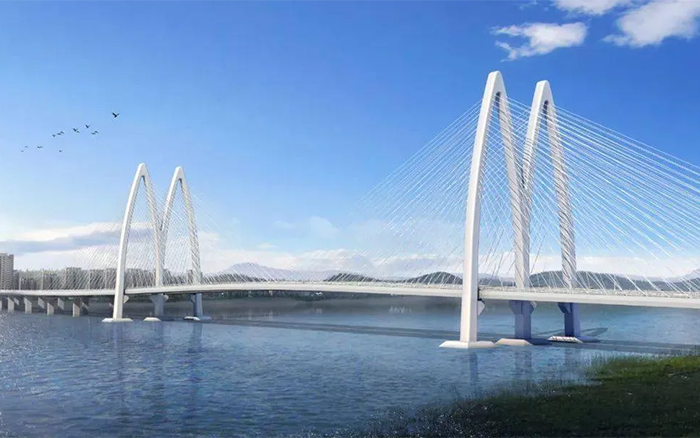 涪江六橋是遂寧首座斜拉橋,主橋為雙塔斜拉橋,項目總投資約19億元,路線全長3215千米,主墩最高118米,是全國首座無筋鋼殼混凝土組合柔性索塔。項目計劃于2025年10月建成,建成后將成為遂寧的標志性建筑,現已進入橋梁主墩索塔施工階段。
