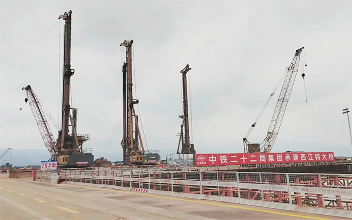 此次大橋建設的樁基共計112根,樁徑為3米,樁深達到107米。面對如此巨大的挑戰,徐工大噸位旋挖鉆機群展現出了其強大的實力。它們平均成孔周期僅為10天左右,全面提速了大橋樁基礎建設,為大橋的穩固與安全奠定了堅實的基礎。