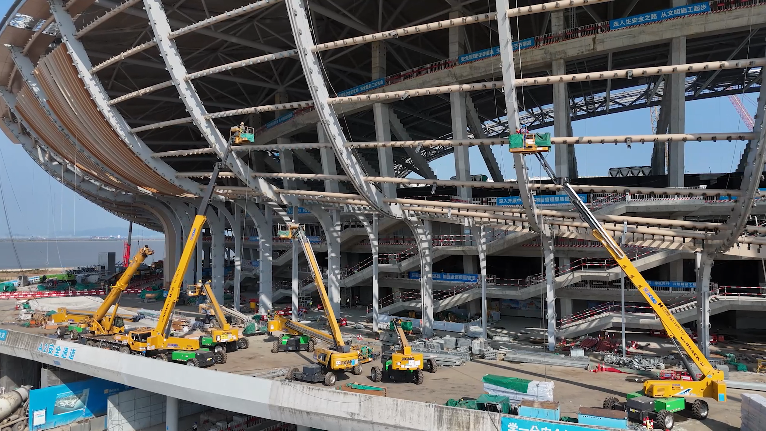 近日,徐工多臺大米級高空作業平臺亮相廣州南沙體育館項目,進行鋼結構焊接及安裝工作。