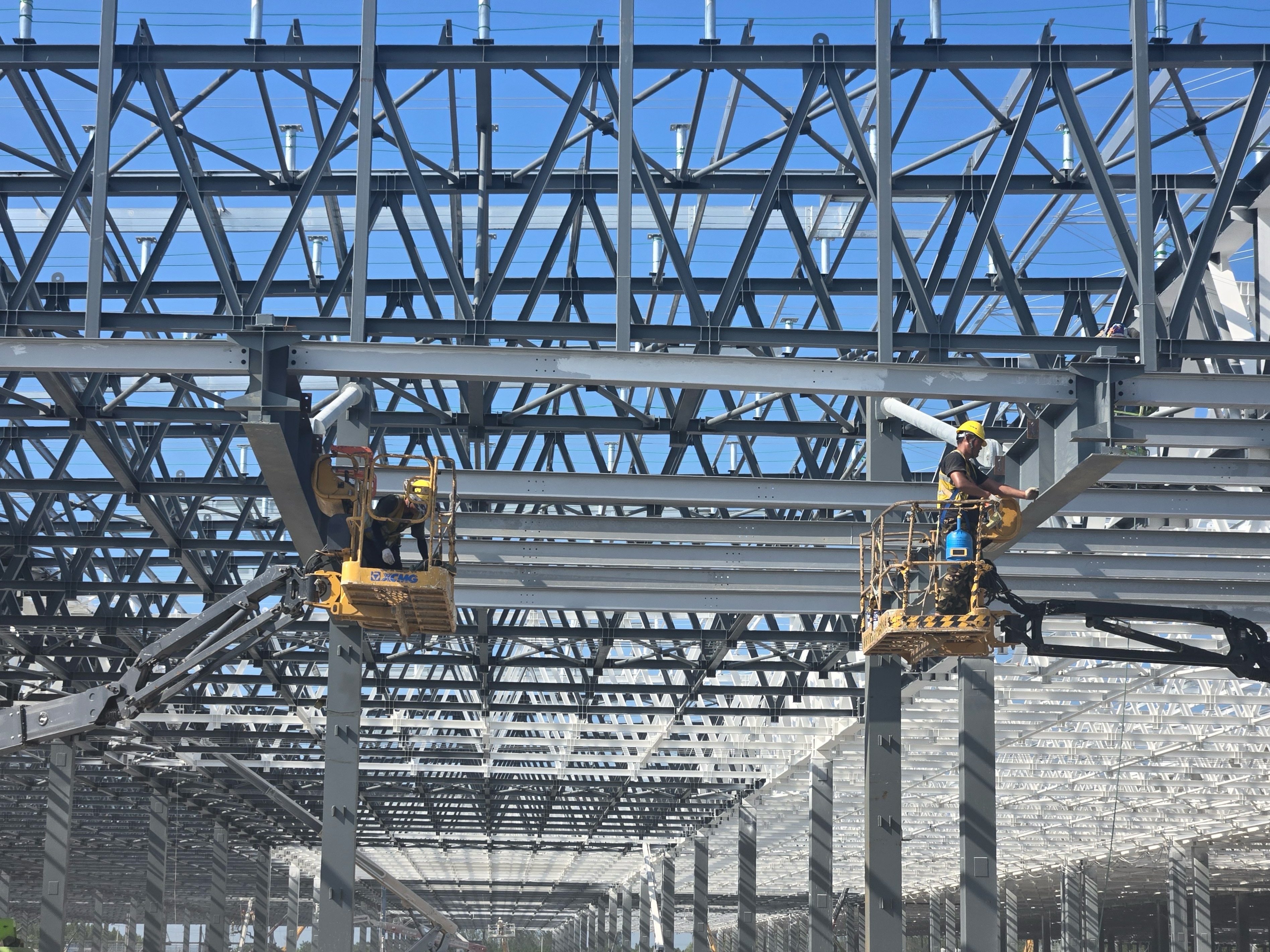 在合肥蔚來汽車三期項(xiàng)目的建設(shè)工地上,徐工 XGS28K、XGS34K、XGS22K 直臂式高空作業(yè)平臺(tái)正高效運(yùn)轉(zhuǎn),成為項(xiàng)目建設(shè)的得力助手。