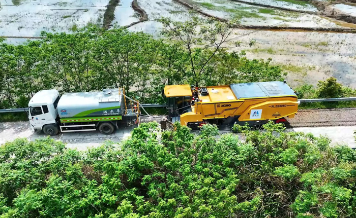 針對這些痛點(diǎn),徐工智慧施工技術(shù)成套道路裝備全場景解決方案,專門針對鄉(xiāng)村道路施工場景,制定了適配的場景解決方案。該方案融合了推土、平地等多項(xiàng)3D控制技術(shù),并配備水泥路面冷再生機(jī),實(shí)現(xiàn)了全斷面的數(shù)據(jù)融合,有效消除了原有路面的缺陷。特別值得一提的是,該方案將北斗定位技術(shù)與慣性導(dǎo)航系統(tǒng)相結(jié)合,巧妙解決了在定位信號(hào)不佳區(qū)域的施工難題。