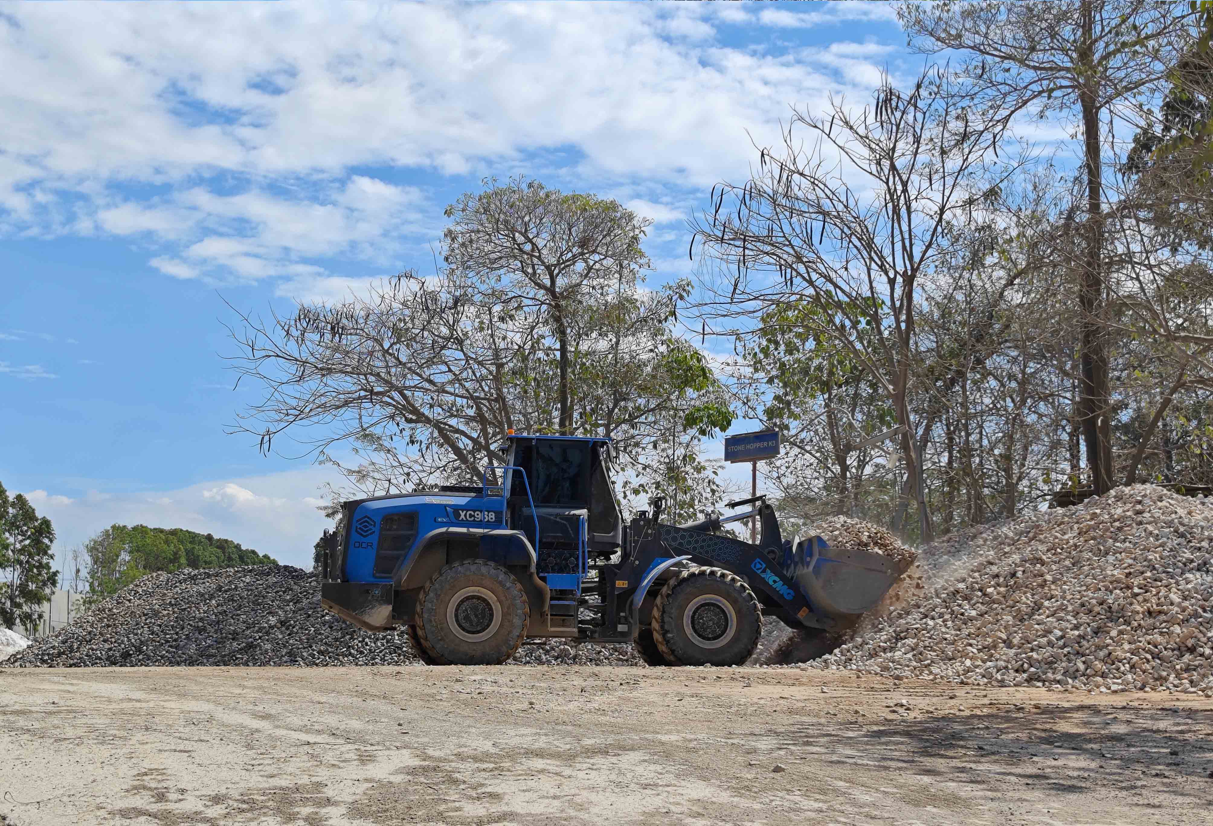 礦山生產,作業時間長,物料堅硬密度高,道路崎嶇,工況較為險重。徐工XC968-EV純電動裝載機的新能源優勢,在礦道端的鏟裝作業優勢非常明顯,相對密閉空間內,零排放、低噪音對工段一起作業的戶外工作人員的健康非常友好。