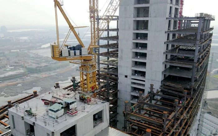 高效、可靠的徐工XGL630-50S塔機(jī)承擔(dān)著樓承板、鋼結(jié)構(gòu)和核心筒主體結(jié)構(gòu)等建筑材料的吊裝重任。歷時(shí)340天,從大象酒店的象腿、象鼻三個(gè)核心筒結(jié)構(gòu)施工,徐工塔機(jī)高效吊裝,配合施工人員完成了從0到180米的建設(shè)征程。