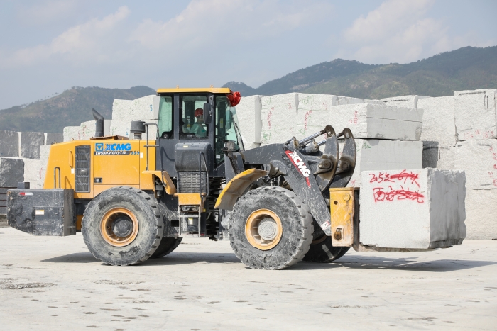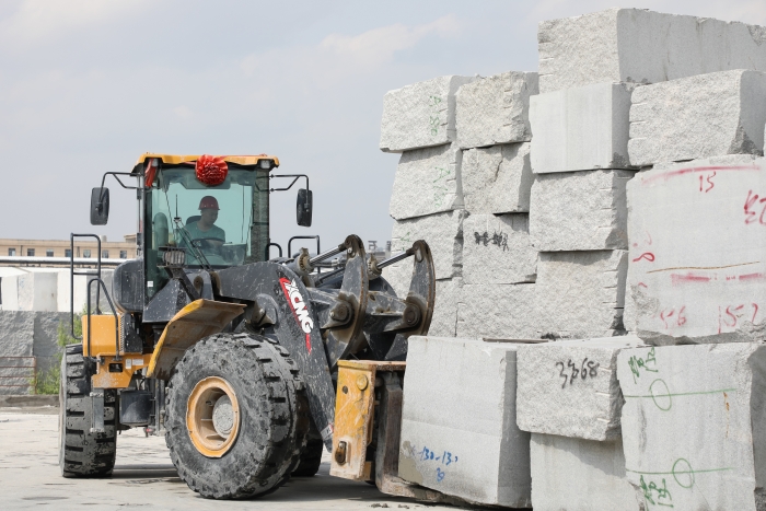 高檔花崗巖石材,以其優(yōu)美的外觀、堅硬的質(zhì)地,一直是公共設(shè)施外立面裝飾的首選。客戶用的這臺徐工LW500KV(GIV)-T18石材叉裝機已在石材加工廠使用兩年,“相比過去用的車,操控輕松方便,視野很開闊,在復(fù)雜工作環(huán)境下也非常穩(wěn)定可靠,干活效率高。”駕駛員對徐工石材叉裝機贊賞有加。