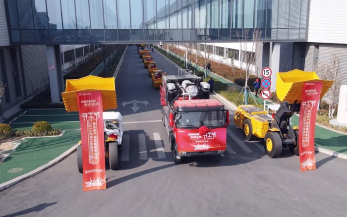 智慧領航,解鎖礦山成套化裝備新場景。可遠程操控、無人駕駛的地下內燃鏟運機成為了發車儀式上的明星產品。該設備集智能、環保、節能、舒適、全面、安全為一體,有效降低人員風險,復雜環境中仍持續穩定作業,安全性能和施工效率也贏得了客戶一致好評。