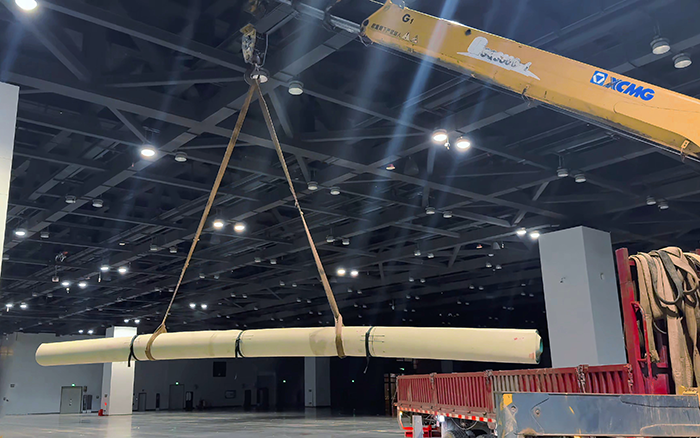 施工中,徐工隨車起重機憑借高強度鋼材打造的起重臂,展現出驚人的起重能力。吊運成卷塑膠卷材時,它動作流暢,如行云流水般將材料從貨箱卸下,穩穩送至場館指定鋪設位置。面對數噸重的特殊塑膠材料吊運難題,其四節臂體同步伸縮,輕松完成任務?!斑@設備的帶載能力遠超預期,再重、再難的吊運都不在話下!” 現場項目負責人對徐工隨車起重機的強大性能給予高度評價。