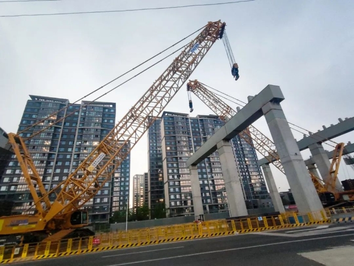 雙機(jī)聯(lián)動(dòng),毫米操控!徐工XGC11000高效破解高架橋施工難題