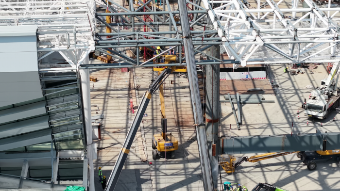 近日,安徽省第二大高鐵客運(yùn)站合肥西站正式掛牌,其東側(cè)站房金屬屋面正在繁忙的施工中。