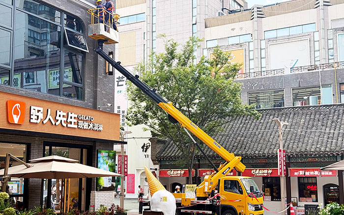 面對 40℃的高溫,無線遙控功能成了工人的 "救星"。操作手在商鋪陰涼處手持遙控器,就能精準控制 28 米高的作業平臺。四節臂同步伸縮配合 360° 全回轉平臺,讓外立面管線檢修一氣呵成。"無級調速太好用了,精度能到厘米級,讓高空作業隨心所欲。" 施工師傅對設備穩定性贊不絕口。
