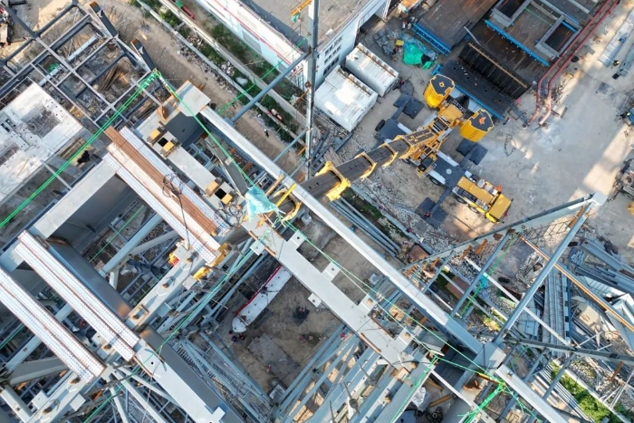 由于場(chǎng)地狹窄,障礙物環(huán)繞,集氣包還需精準(zhǔn)送入已建車間內(nèi)部,車間上方同樣阻礙重重,給施工增加了難度。
