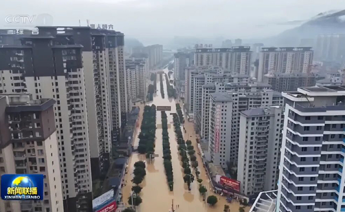 榕江縣遭遇洪水的航拍畫面