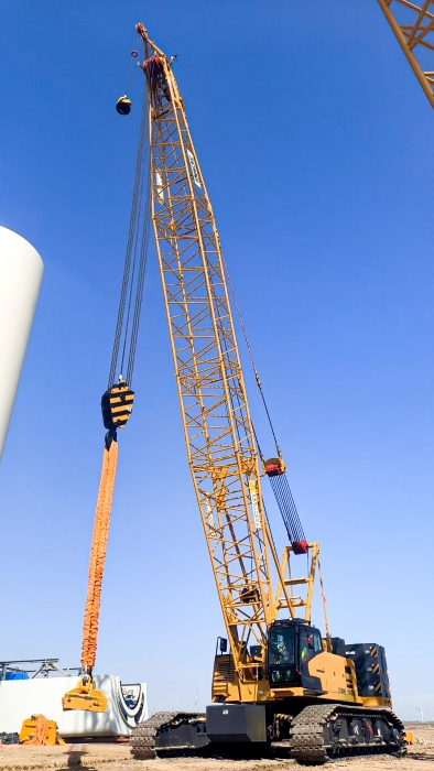 近日,在我國(guó)西北某風(fēng)電場(chǎng),徐工XLC15000(1000噸級(jí))履帶起重機(jī),以132+12米標(biāo)準(zhǔn)風(fēng)電工況,精準(zhǔn)將重達(dá)34噸的風(fēng)機(jī)葉片平穩(wěn)吊裝至百米高空,圓滿完成10兆瓦風(fēng)機(jī)吊裝任務(wù)。