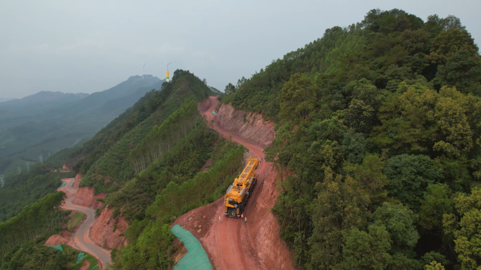 在廣西崇山峻嶺中,徐工XCA4000輪式起重機憑借“6+2雙動力”驅動系統(tǒng),以402.5噸整車重量完成重載轉場,在陡峭狹窄的山地中穩(wěn)健行進。