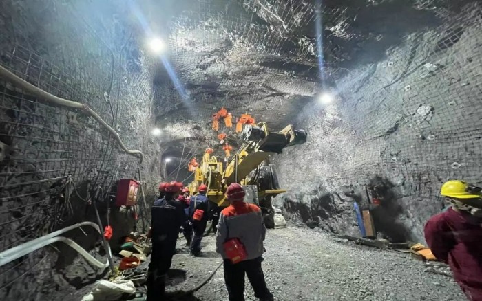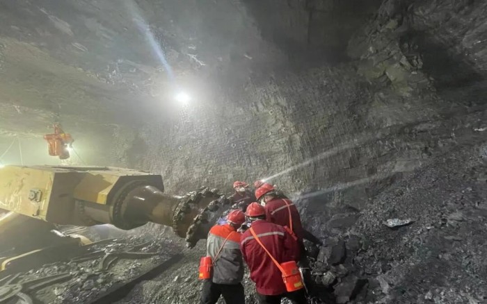 徐工XTR7/360掘進機在礦下了一場硬碰硬的較量,平均兩小時進尺1m的施工效率,引來現場采礦工作人員的圍觀。