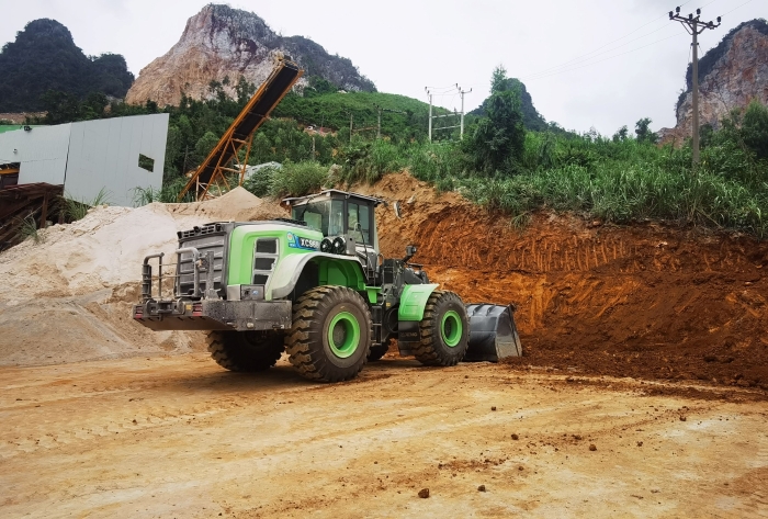 徐工XC968-EV純電動裝載機以6.5噸的額定載荷、≥180kN的最大掘起力以及適用的卸載高度,輕松滿足采石場的生產需要。