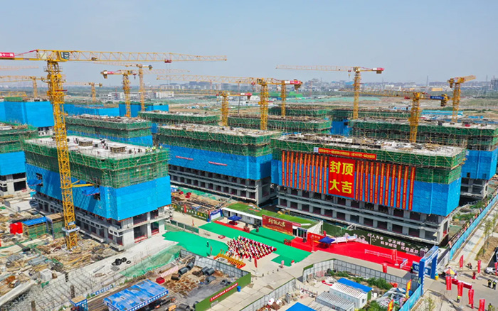 歷經200多天奮戰,徐工塔機為項目高速建設保駕護航。隨著最后一立方米混凝土澆筑完畢,招商·公園1872項目一標段28棟住宅樓在啟動區市場化項目中率先全部封頂!