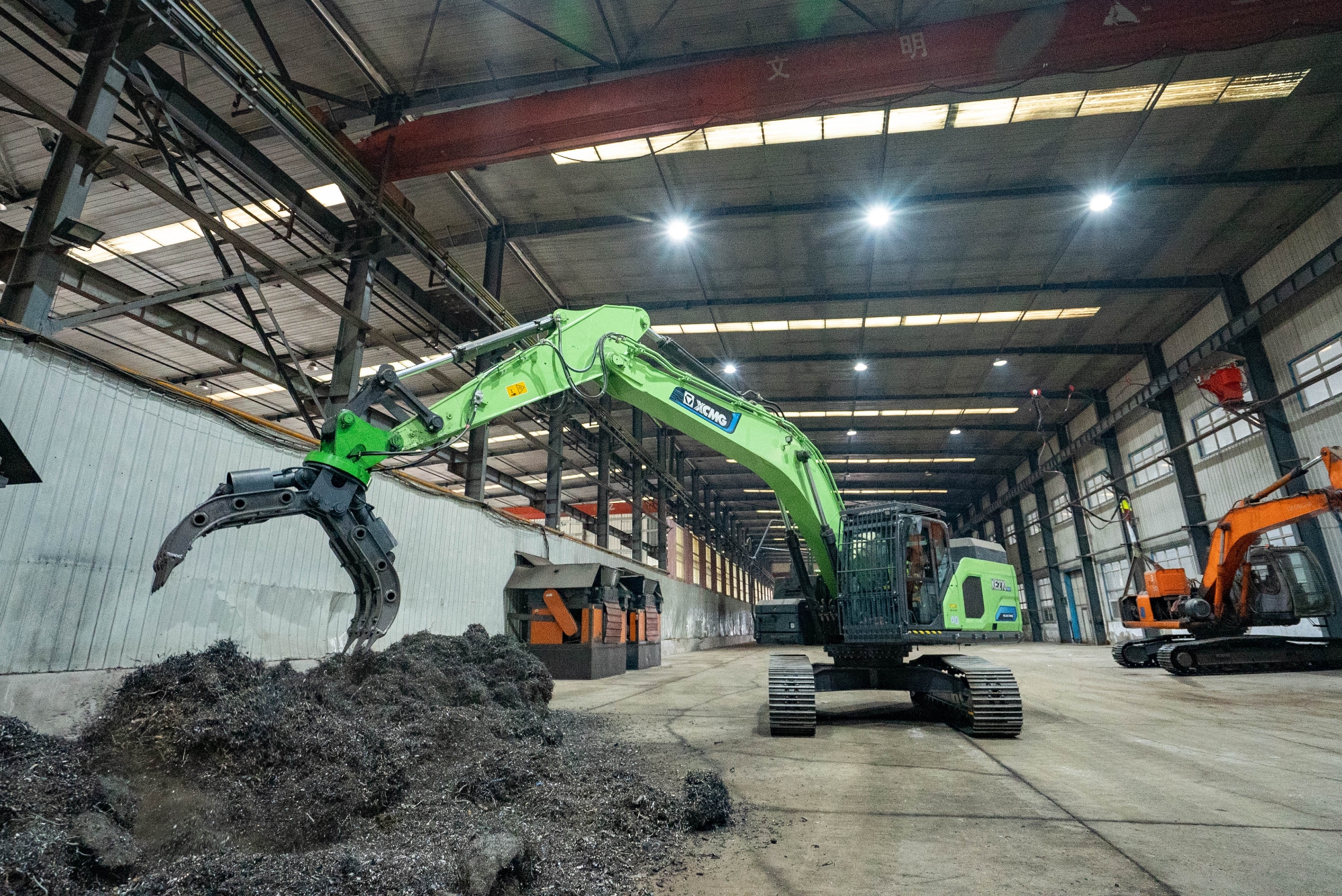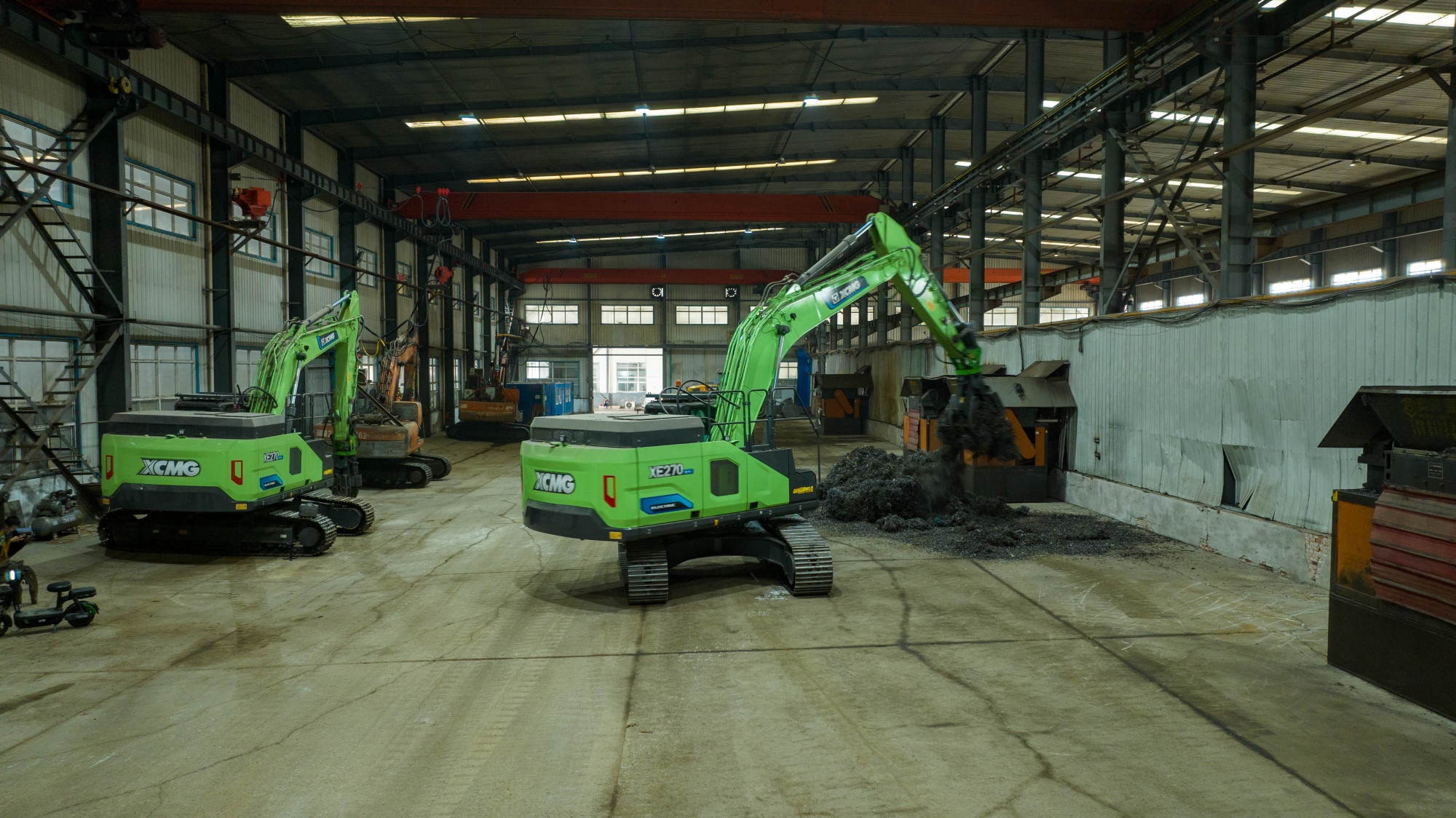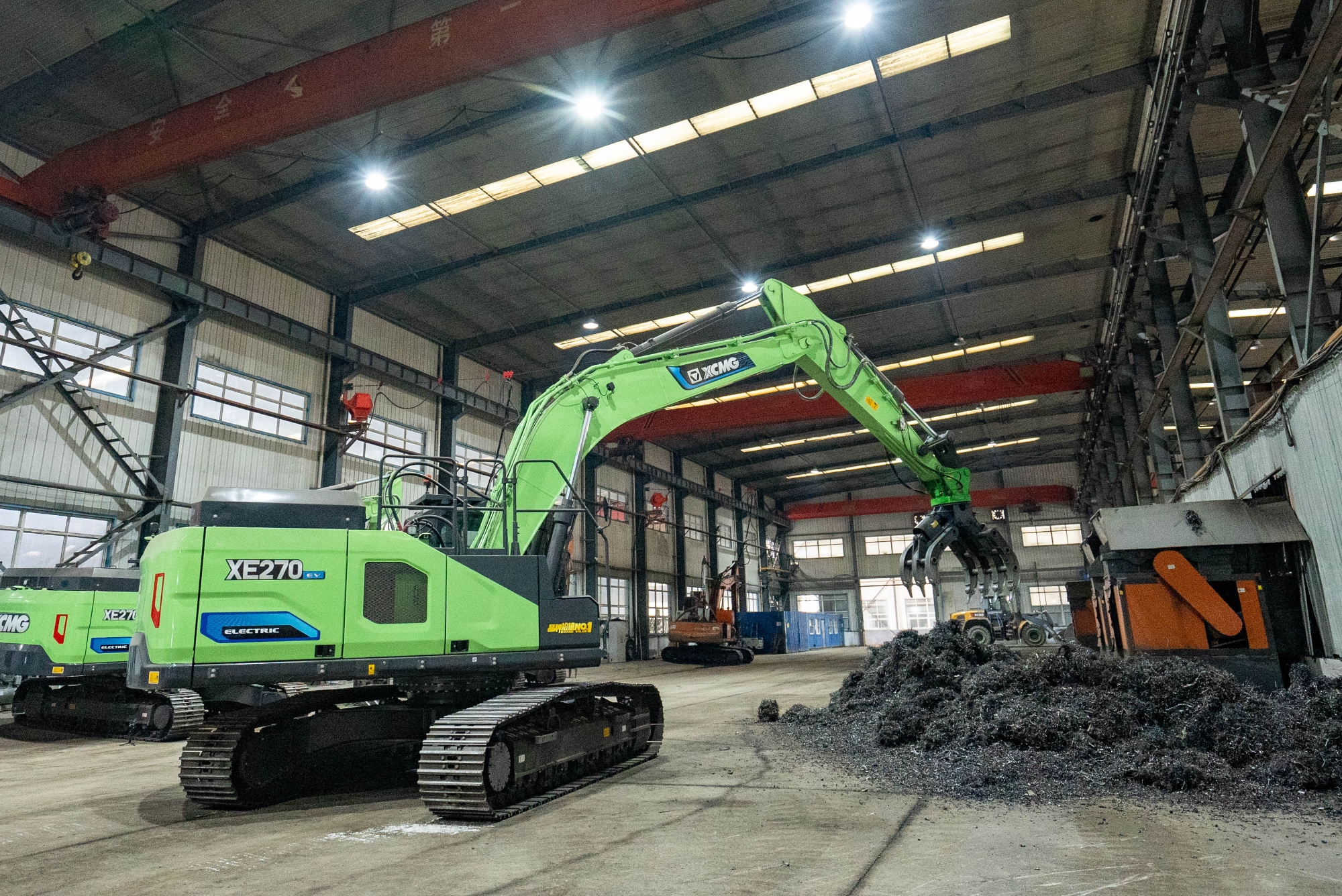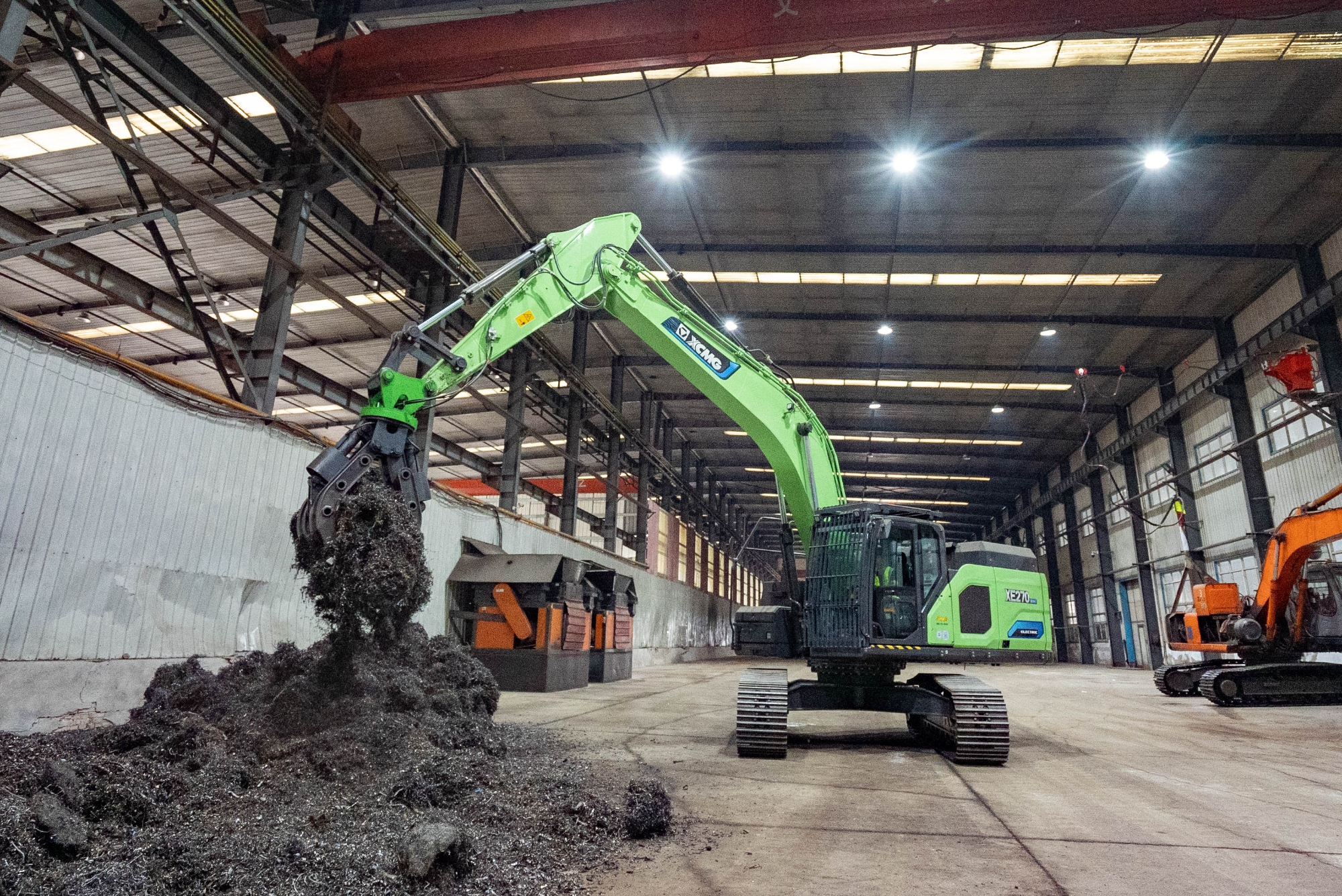 在河北唐山某鋼廠內,兩臺徐工XE270EV純電動挖掘機正靈活地進行鐵屑裝車作業,與傳統燃油設備轟鳴、濃煙滾滾的場景不同,這里只有電機運轉的低鳴和高效作業的節奏聲。