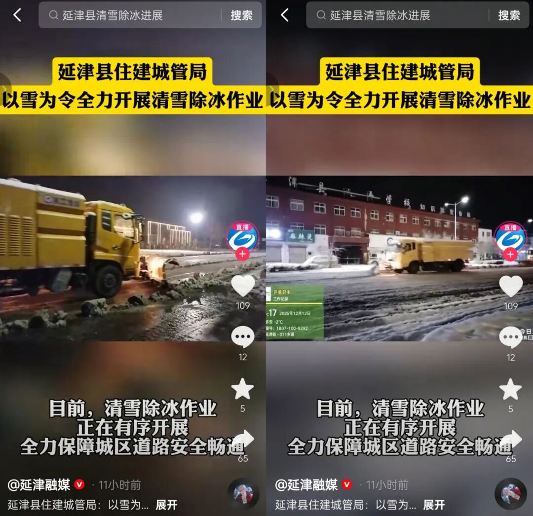 延津縣-011鄉(xiāng)道因持續(xù)降雪形成厚達8厘米的積雪層,部分彎道與坡道路面被車輛反復碾壓后,冰層與雪泥混合形成“鏡面路”,導致多輛貨車打滑滯留,交通一度受阻。