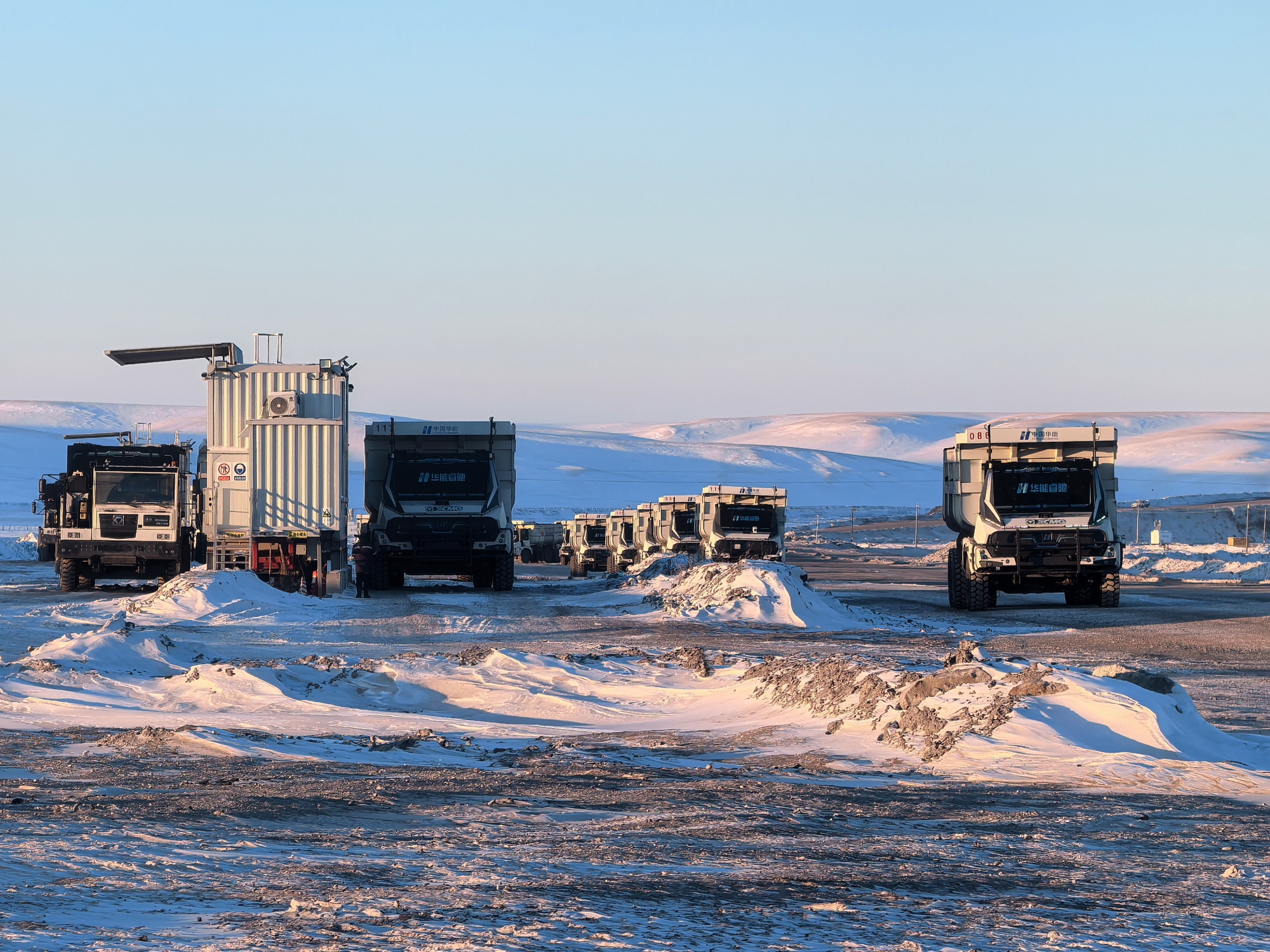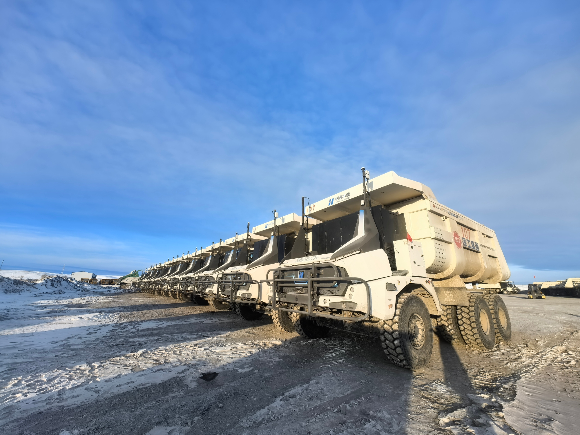 從夏日的綠草如茵到冬日的白雪皚皚,內(nèi)蒙古華能伊敏露天礦的年均溫差超60攝氏度。12月,氣溫已降至零下30多度,白雪覆蓋的礦坑中,百臺(tái)無人純電礦卡正以“鋼鐵洪流”之勢穿梭前行。