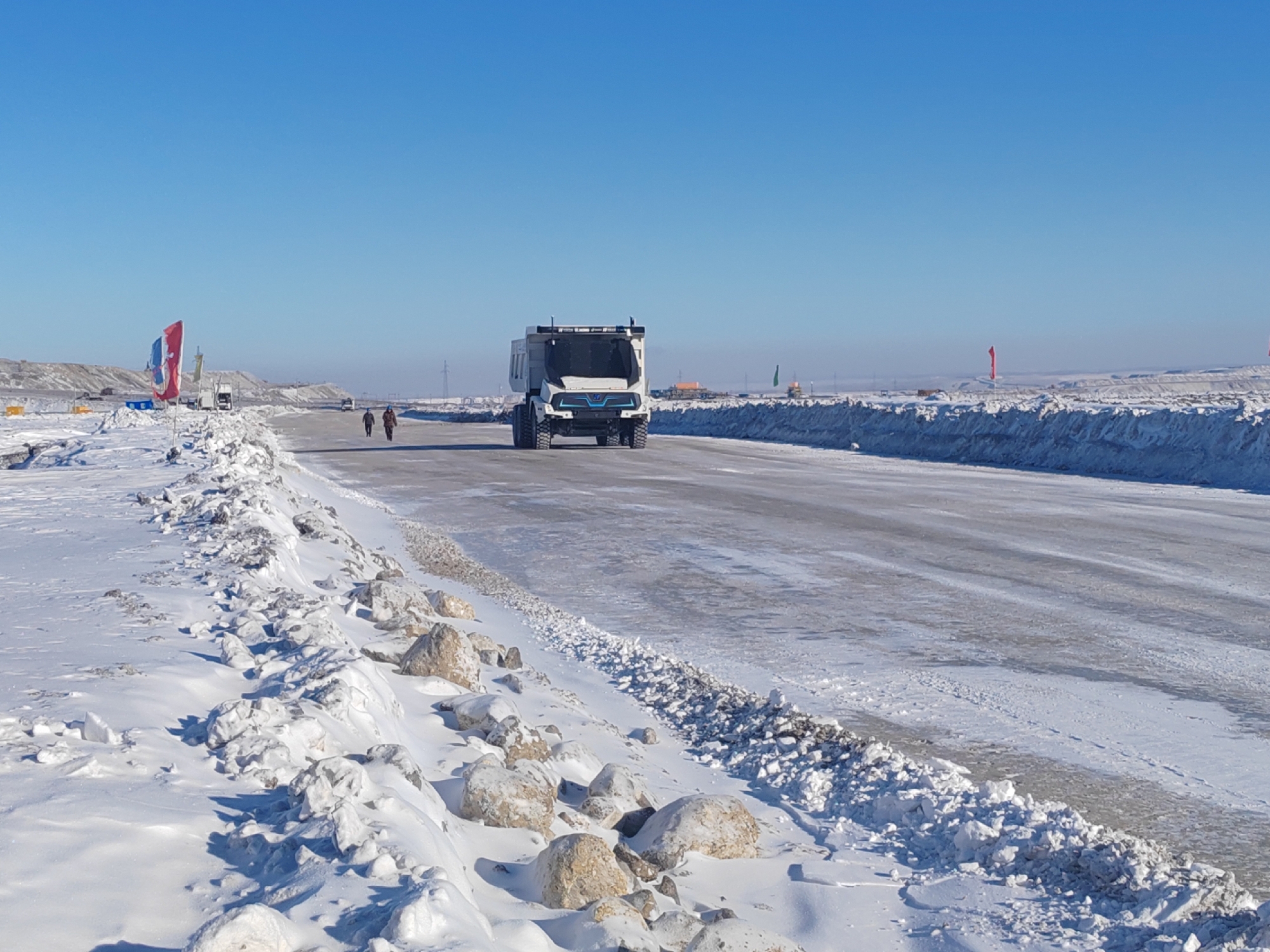 無人純電礦卡在車架、貨箱結(jié)構(gòu)等方面采取特殊材質(zhì),且傳動(dòng)、液壓、制動(dòng)等系統(tǒng)經(jīng)過優(yōu)化調(diào)校,可輕松抵御-40℃的極寒挑戰(zhàn)。電池容量568kW·h,續(xù)航能力強(qiáng)。在持續(xù)低溫環(huán)境下,車輛三電系統(tǒng)性能穩(wěn)定,其具備的強(qiáng)大環(huán)境適應(yīng)能力,有力保障了礦山生產(chǎn)在嚴(yán)冬季節(jié)的連續(xù)性與穩(wěn)定性,切實(shí)達(dá)成了全天候高效運(yùn)營的目標(biāo)。