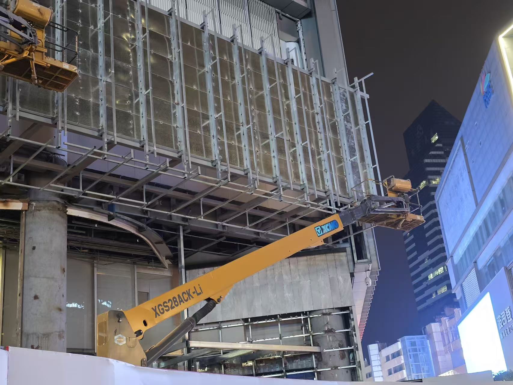 XGS28ACK-Li擁有28.8m最大作業(yè)高度,輕松覆蓋新百廣場高層外立面的幕墻安裝、鋼結(jié)構(gòu)拼接作業(yè)面;460kg的大承載量支持雙人協(xié)同施工,搭配靈活的臂架操作,大幅提升外立面改造的施工效率。更關(guān)鍵的是,設(shè)備采用鋰電驅(qū)動,實現(xiàn)零尾氣排放、低噪音作業(yè),即使在商圈白天運營時段施工,也不會對周邊商業(yè)活動造成干擾,完美適配核心商圈的施工管控標準。