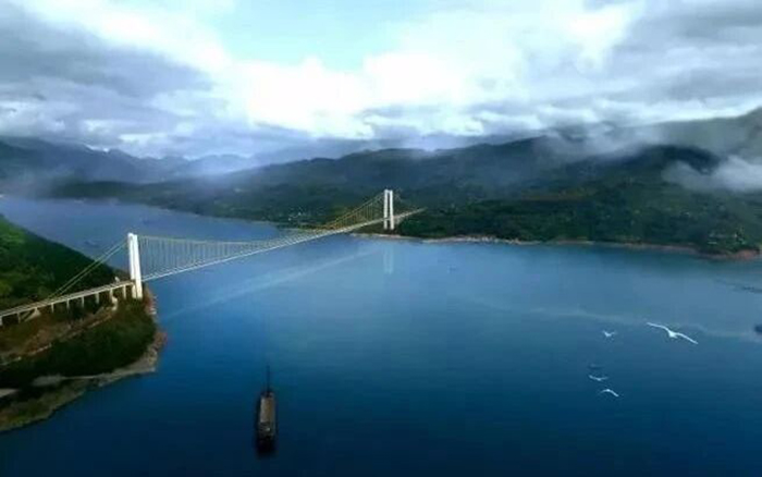 萬州新田長江大橋是三峽庫區在建跨度最大的雙塔單跨鋼箱梁懸索橋,大橋全長1.7公里,一跨過江,主跨1020米,是三峽庫區繼萬利高速駙馬長江大橋之后的又一座千米級懸索橋。