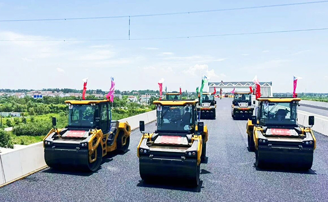 主力設備:徐工XD135T憑借雙泵雙馬達振動液壓系統杜絕拍振,67Hz高效壓實技術搭配電比例行走控制,大幅提升作業效率;”軟起軟停“技術,避免路面堆料、擁包,確保路面平整性。