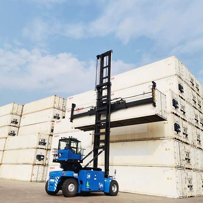 XCH908E換電堆高機可用于集裝箱空箱裝卸、場地轉運及堆垛作業(yè)。該客戶在選擇新能源港機時,第一時間選擇了徐工設備,并對此滿懷信心道: