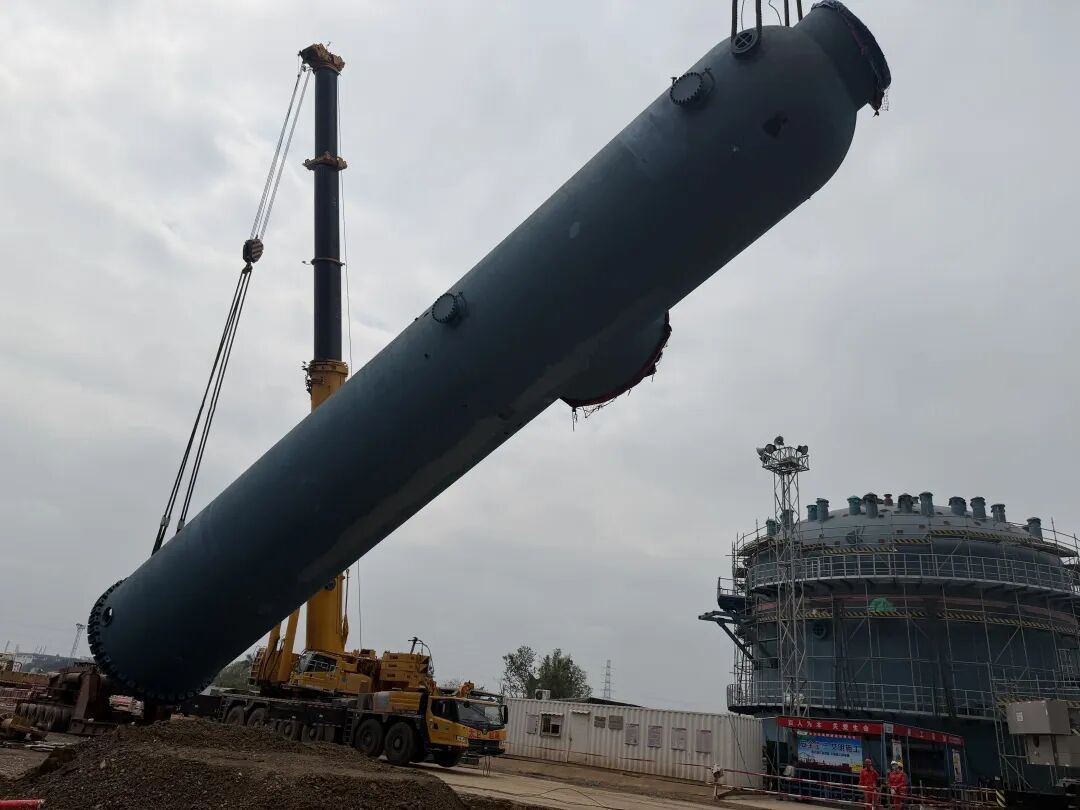 這臺“鋼鐵巨龍”跨越重重障礙,將201噸、直徑2.5米、長30米的巨型設備精準送入鋼結構框架,實現“零偏差、零風險”就位,再次以硬核實力詮釋“國之重器”的擔當!