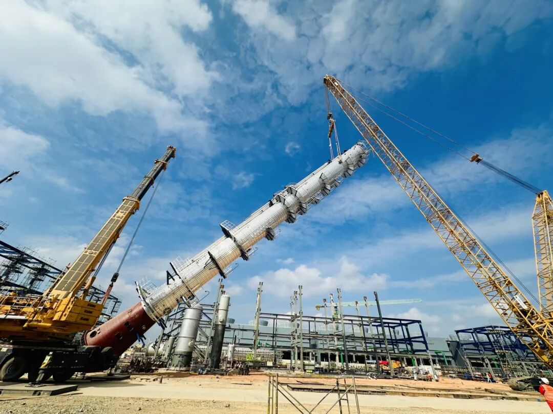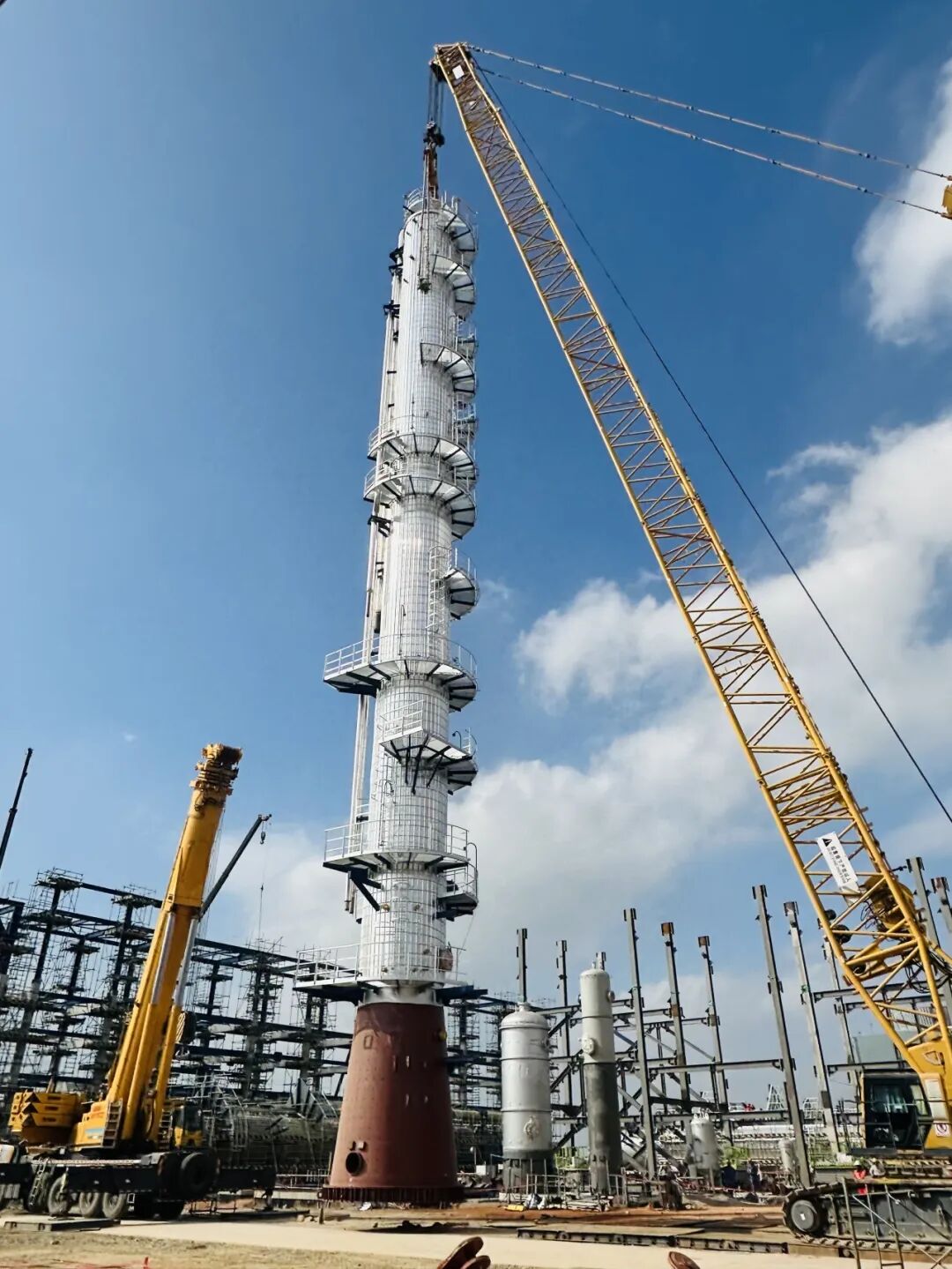 挑戰(zhàn)突破:擎起石化“巨無霸”此次吊裝的C-201苯塔為裝置最高核心重器,體型龐大、安裝精度要求極高。面對場地限制、設(shè)備高聳易受風(fēng)載影響等難題,徐工XGC400以超凡性能迎難而上: