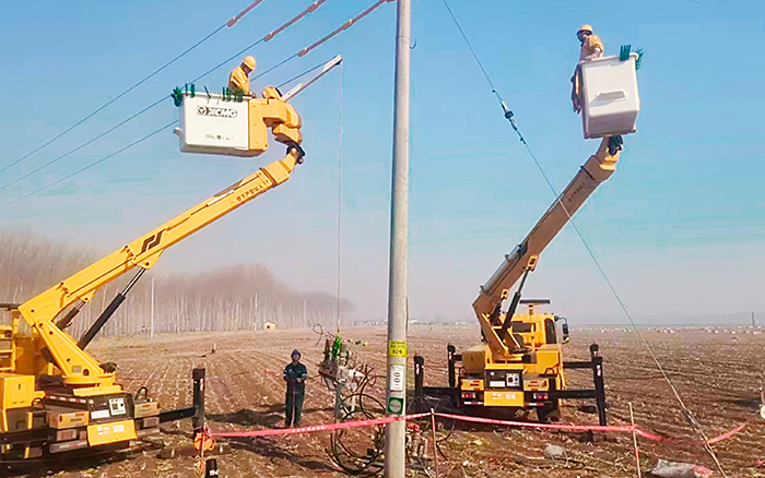 寒風掠過東北鄉間田野,數臺徐工絕緣斗臂車在藍天映襯下格外醒目,工作人員身著防護裝備,依托設備精準開展不停電施工作業,為區域電網安全筑牢堅實防線。此次施工聚焦東北農村配電線路升級改造,作業區域地處開闊農田,桿塔分散、土質松軟且風力較大,對設備穩定性與作業精準度提出嚴苛考驗。徐工批量絕緣斗臂車憑借超強適配性,成為破解復雜場景作業難題的核心利器。