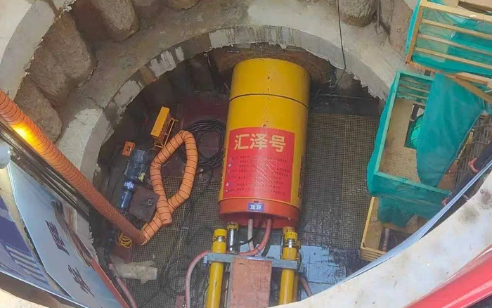 目前,徐工頂管機(jī)已開始向巖層頂進(jìn)
