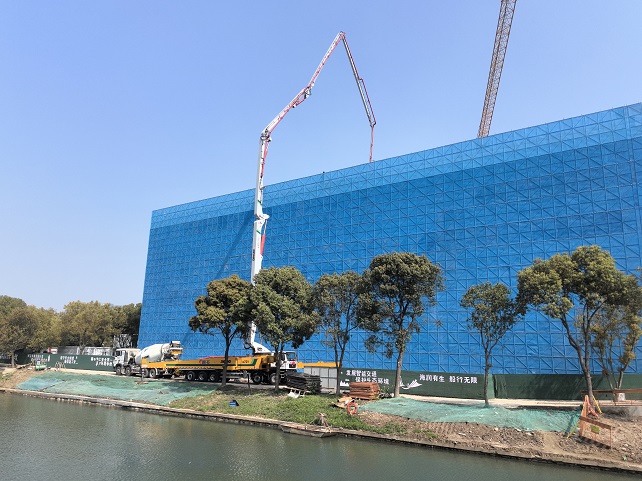 作為本次施工的“主力”,HB72V憑借72米超長臂架,輕松覆蓋5層頂板各個角落,減少布料盲區(qū)與接管次數(shù),大幅提升施工效率。同時,多臺G4804B攪拌車精準(zhǔn)匹配泵送節(jié)奏,實現(xiàn)運輸、泵送無縫銜接,有效保障了500方大體積混凝土的連續(xù)澆筑。